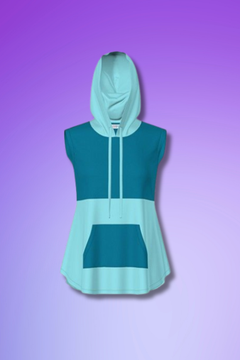The Details: The Brittany is a sleeveless hooded tank with a functional drawcord, an empire seam, kangaroo pockets, and a shirttail hemline. \r \r She has a relaxed fit and comes in Rayon Slub Jersey 95/5 Rayon/Spandex & MVS 95/5 Poly/Span fabric. She comes in sizes XS - 3XL.