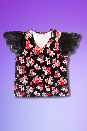Introducing the Destiny Lace Sleeve Top, your go-to piece for adding a touch of romance to any outfit. The shirring at the shoulder creates a subtle texture, while the relaxed fit ensures all-day comfort. Perfect for warm days and breezy evenings, the Destiny Lace Sleeve Top is a versatile addition to your wardrobe, ready to pair with your favorite denim or skirts. Step into the season with style and grace like it’s your destiny! \r\r Fabric: \r\r Crepe - 95% Rayon / 5% Span \r\r Sizes: XXS-3XL