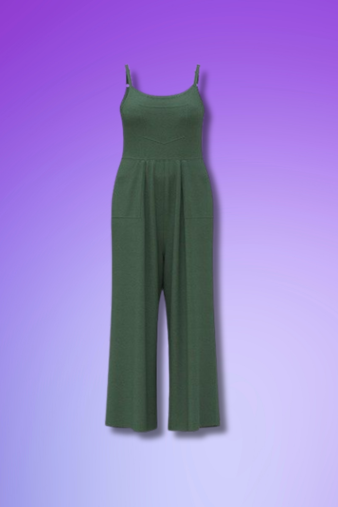 The Details: The Leola is a wide-leg cami jumpsuit with an adjustable cami strap that has a clasp and rings. She's got a scoop neck and back, a center front chest patch pocket, an elastic waist seam, patch pockets at the hips, and a seam at the center of the leg. Leola is an ankle-length pant with a slouchy fit through the hip and thigh, and a relaxed wide leg. She comes in Crepe Moss - 95% Poly / 5% Span and is available in sizes XXS-3XL.