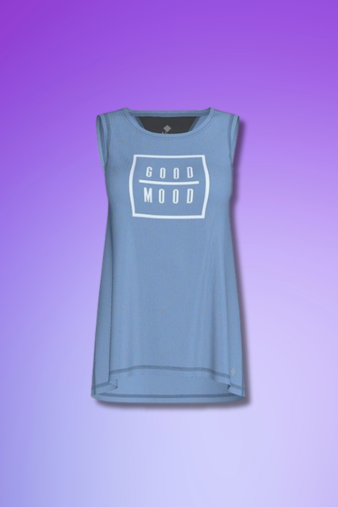 A high neck relaxed fit sleeveless tank with high-low hem. The power mesh back insert provides cooling airflow. Soft lightweight fabric skims easily over the body.