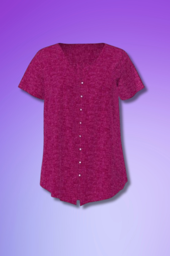 The Details: The Shannah is a button down v-neck with functional buttons at the center front, yoke with shirring at the back, a curved hem, and relaxed sleeves. She has shelled or plastic buttons available and hip covering length. \r \r She comes in NEW bubble Crepe Chiffon 96/4 Poly/Span 135GSM, with no stretch, lightweight and crepe textured woven fabric. She also comes in Papaya Gauze 62/38 Rayon/Poly 90GSM that has no stretch, a sheer yet lightweight textured woven fabric. Shannah has a relaxed fit and comes in sizes: XXS-3XL.